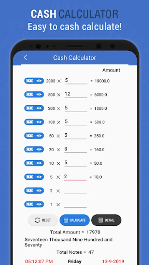 Cash Calculator app that contains all the Cash And Indian Currency calculators.