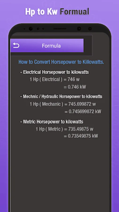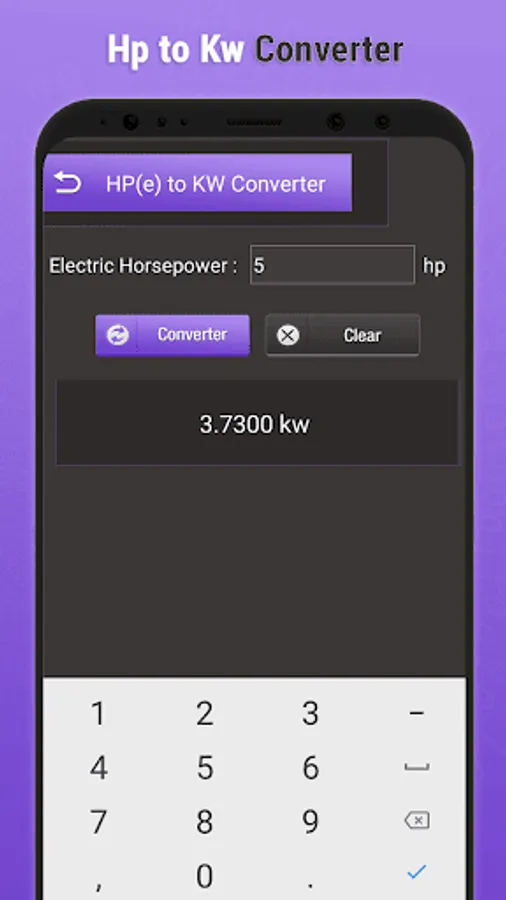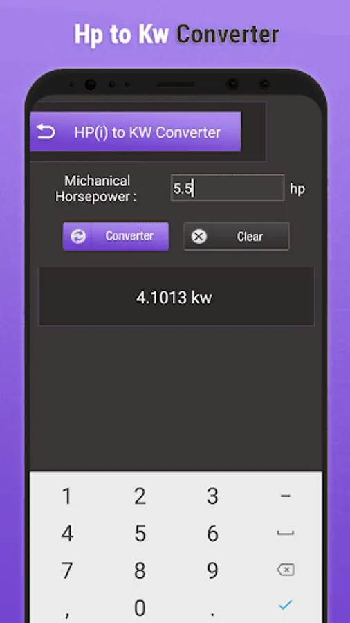 After the kW conversion completed, the horsepower value displayed below with kilowatts and hp values.