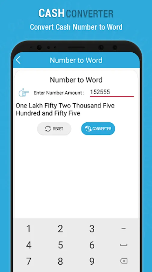 Convert Numbers to Words:Easy to convert number to word press Convert button, and you get words.