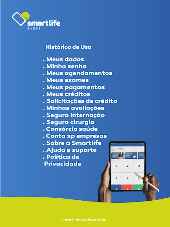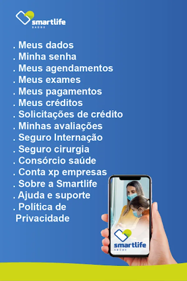 Smartlife Saúde is an application for medical services, with no monthly fee. Here, you schedule and carry out consultations and exams in an easy and agile way.