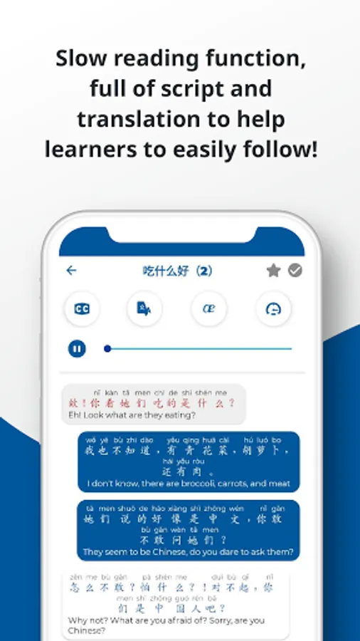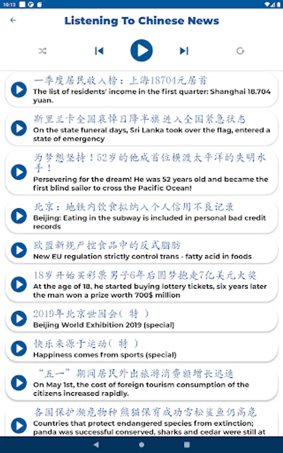 Enjoy practicing Chinese while driving or traveling…, you just need to turn on the app and click on playlist mode.