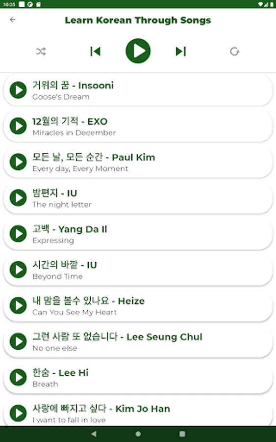 Enjoy practicing Korean while driving or traveling…, you just need to turn on the app and click on playlist mode.
