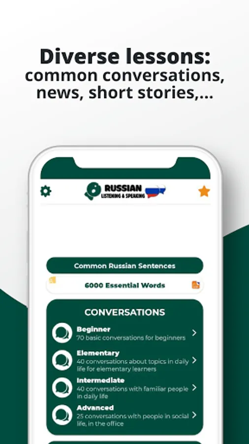 "Learn Russian - Listening And Speaking" is one of PORO’s ongoing apps for self-learners who want to speak Russian easily and effectively. With 750 daily dialogs, list of lessons with various topics from greeting, introduction, shopping, business conversation, family talk…. It's suitable for all Russian learners from beginner to intermediate and advanced learner to practise speaking Russian.