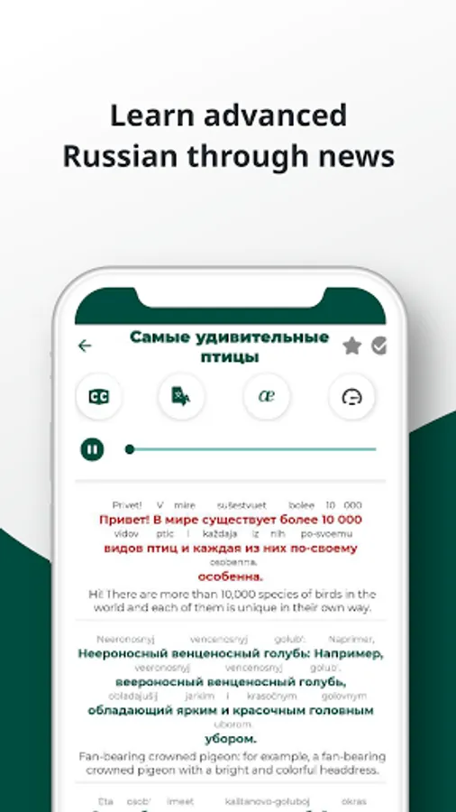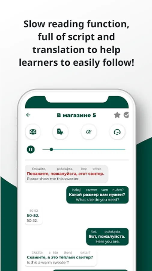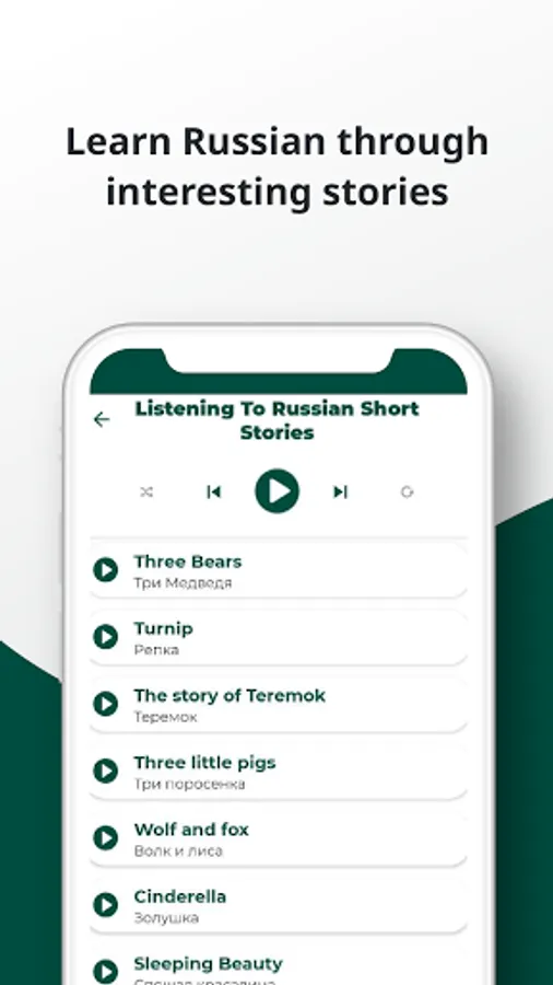 Enjoy practicing Russian while driving or traveling…, you just need to turn on the apps, and click on playlist mode.