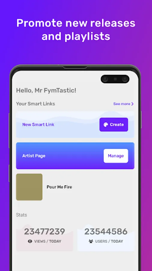 Smart Links App is the easiest way to promote your music. With a single link, we can help get your music across all streaming platforms and reach a wider audience. Promote your singles, albums, and even curated playlists hassle-free! Smart Links generate promotional landing pages that route fans to your music on the right streaming platform.