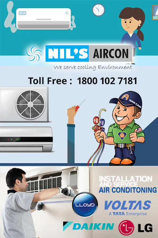 Nil's Aircon, A prominent leader in the service market. We specialize in sales, installations, Annual maintenance Contract, repairs and corrective maintenance for domestic and industrial customers. It’s been a few years since the company has initiated and made benchmarks during this period through delighting services.