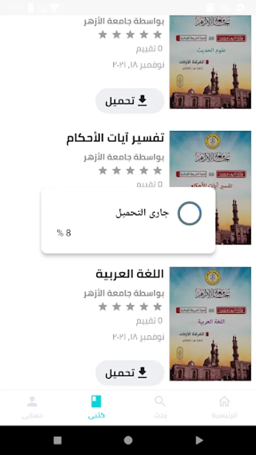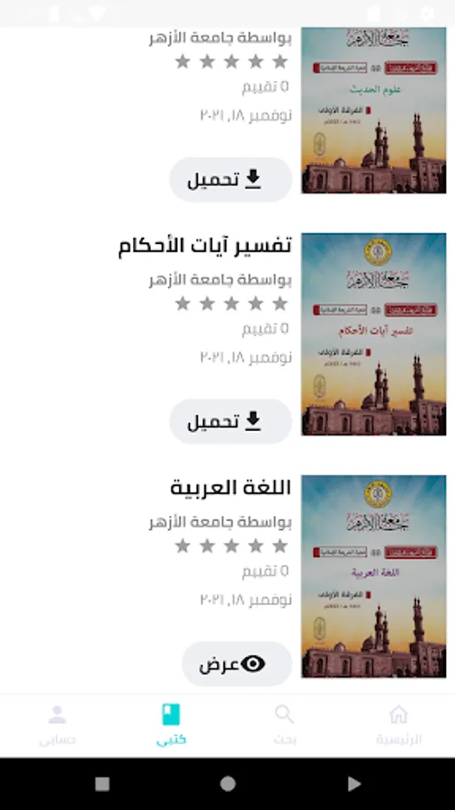 A student at Al-Azhar University can enter the application with the national number and download his books and notes