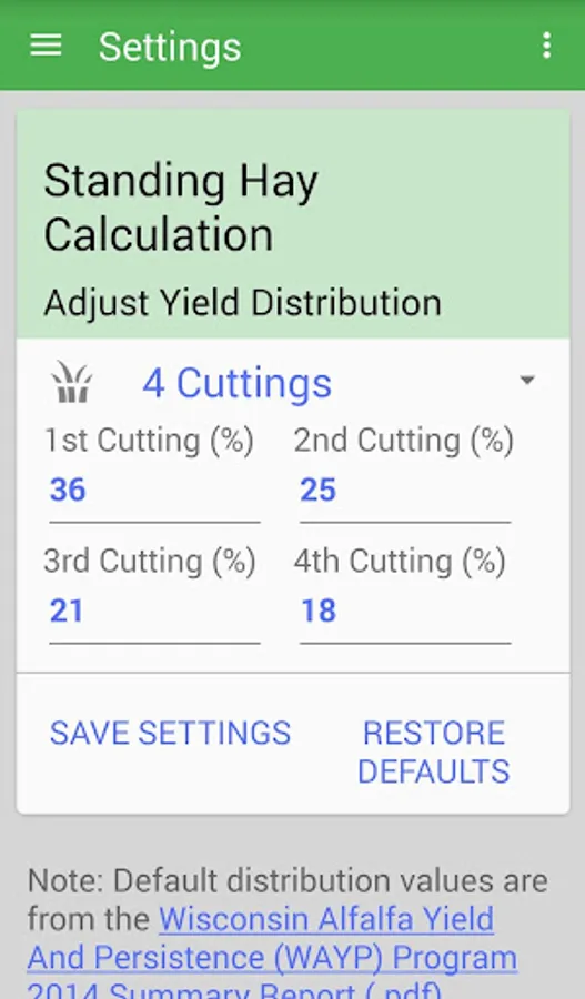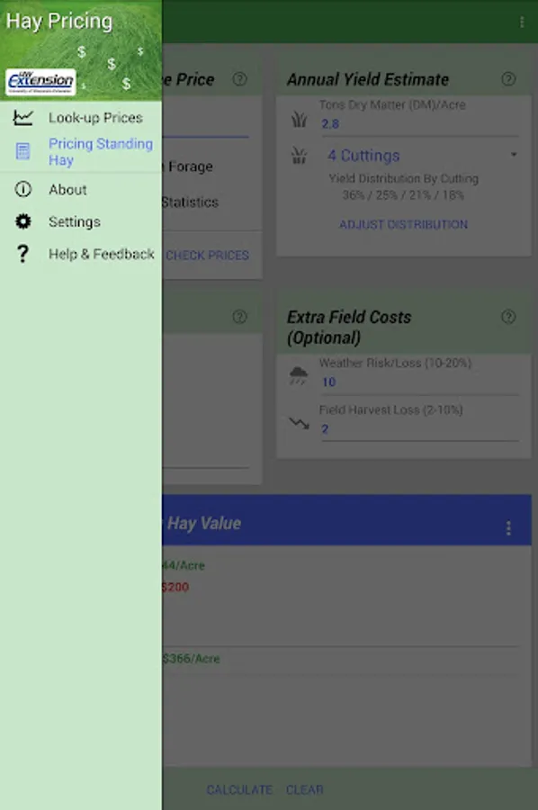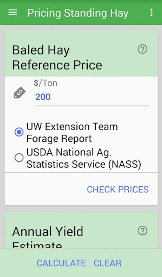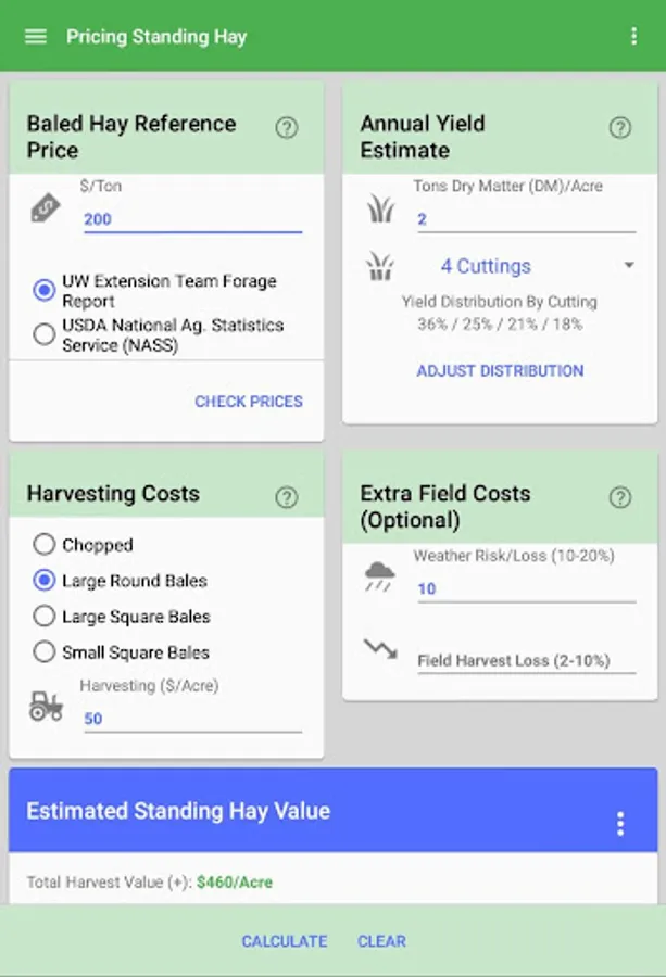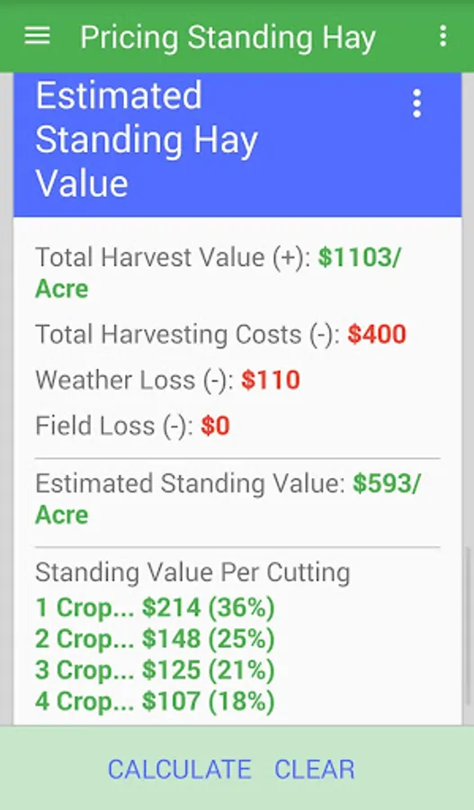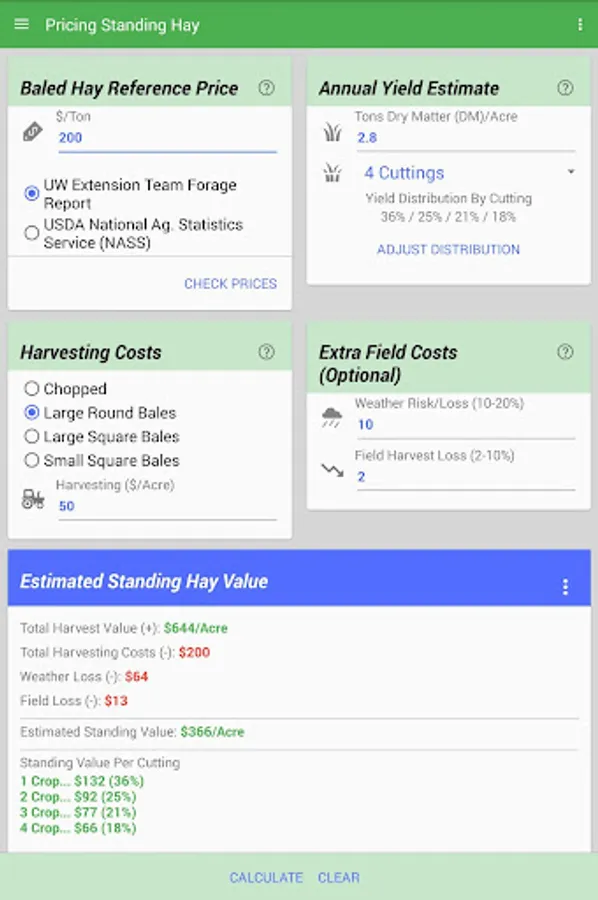 Users of this app can also enter projected hay yield, cutting schedule and harvest costs to calculate a standing value per acre.