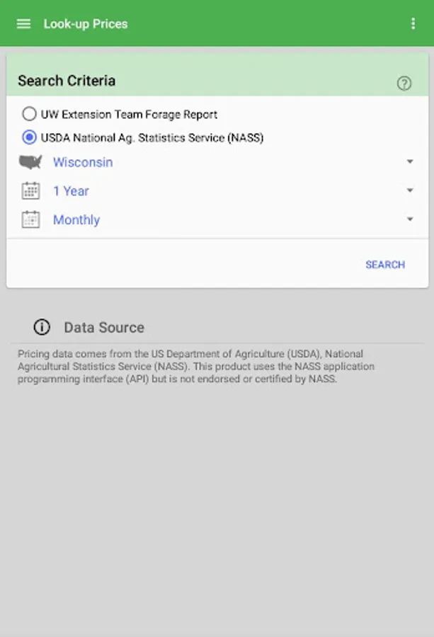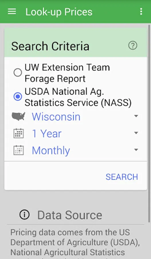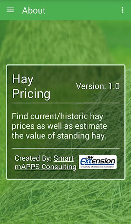 This app was developed to help farmers and landowners more easily determine the price of hay, as well as negotiate the sale or purchase of standing hay. This app can also be used to look-up historical hay price information.