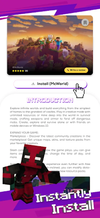 If you are searching for Texture packs, Maps, Skin or Mods for Minecraft PE to make your Minecraft look alive, then our free Addons MCPE Application is your right choice. Get updated Skins, Maps, Textures and Mods to decorate your Game just the way you like. Get lost in the Minecraft worlds with the new add-ons.