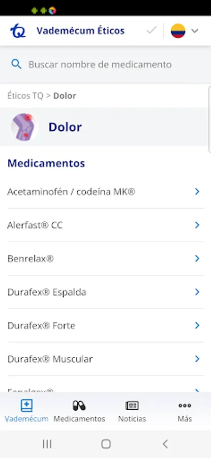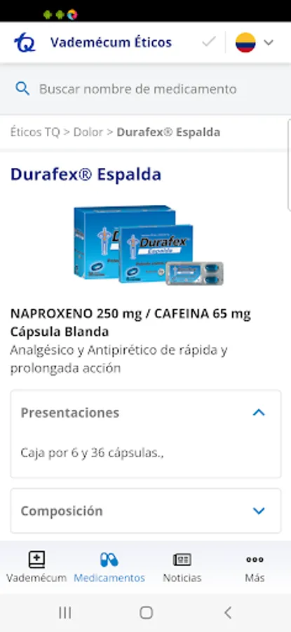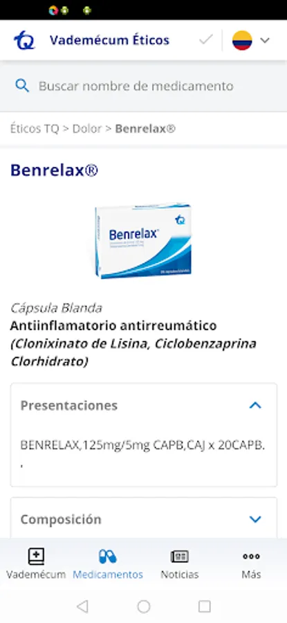 You will also have access to the latest medical news by specialty and you will be able to use the BMI calculator. The application shows the information of the current portfolio offered by the TQ brand and does not include products from other laboratories. The health professional must select the country where he wishes to check the availability of medicines and their presentations