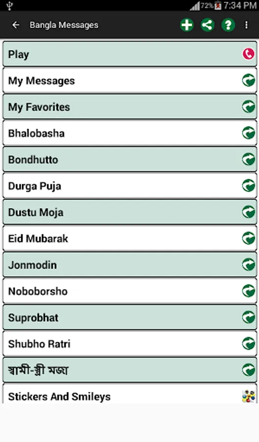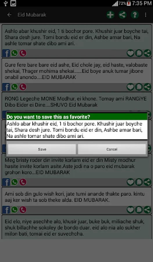 ** Click on the bangla message and choose the app from the dialog through which you want to send the message.
