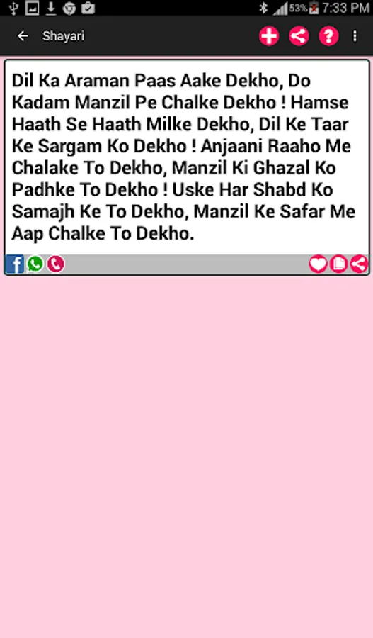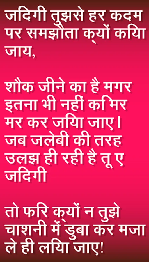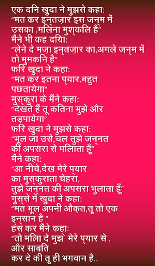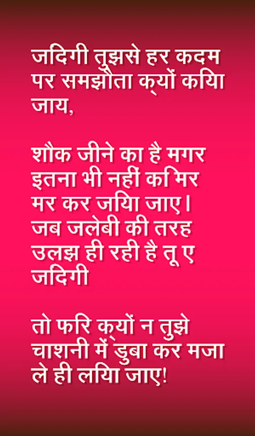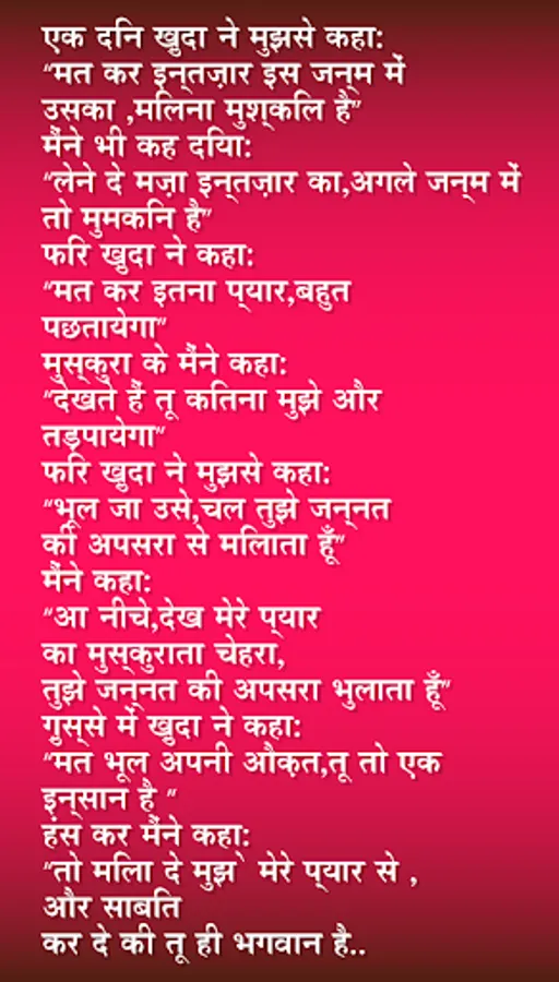 Enjoy the largest collection of beautiful Shayari (Hindi Messages) for every occasion to share with your loved ones on all Social Networking Sites, SMS, email, Chats, etc.