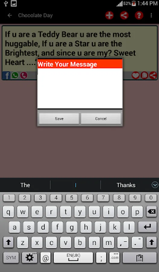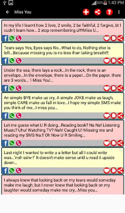 Share beautiful and heart-touching love filled messages with your loved ones on Social Networks, Chats, email, SMS, etc and make them fall in love with you once again. Enjoy the largest love message collections for every occasion on your mobile.