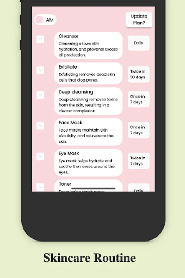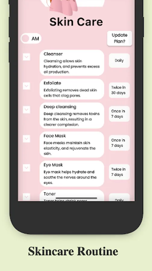 You will receive a personalized beauty plan through our app. This plan includes six essential components — makeup tutorials, face, yoga, and Gua Sha exercises, skincare routine, makeup, skincare product recommendations, and lifestyle tips.