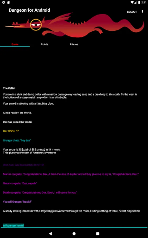 Dungeon is our emulation of a seminal milestone in computer gaming: the classic interactive text adventure "Zork" of 1977. Running on the TriadCity platform, it's our homage to one of the most influential computer games of all time. Most importantly, it's fun!