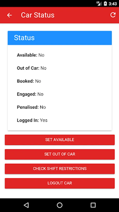 To use this application you simply need to sign in with your Driver ID and PIN, and set your vehicle to Out of Car.