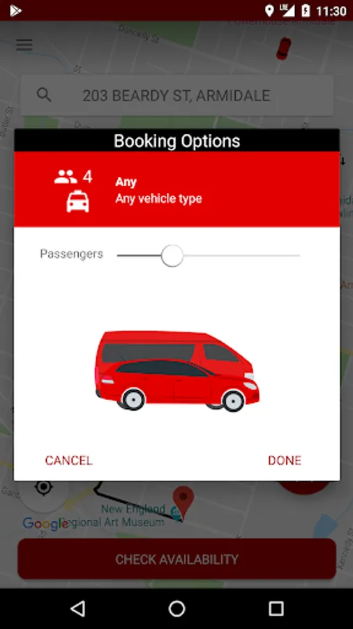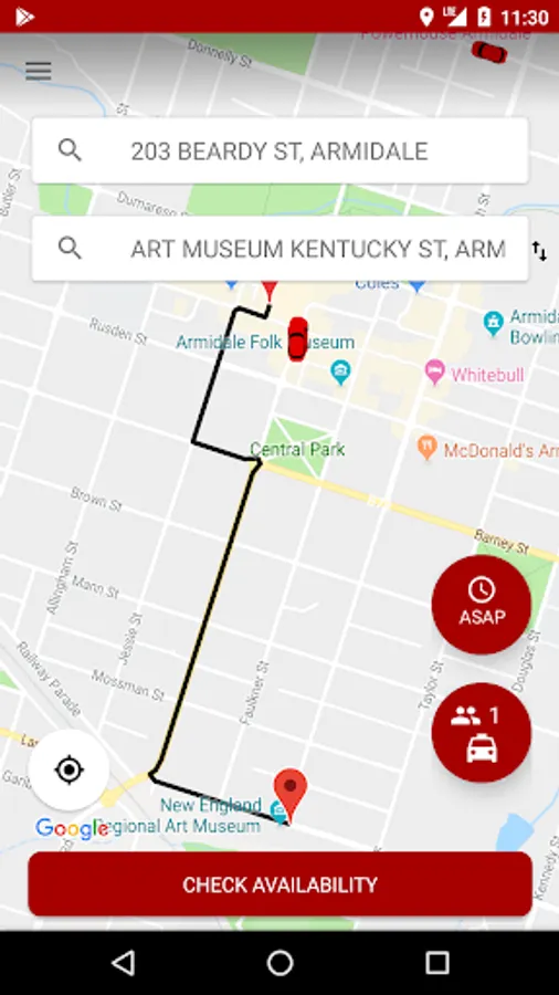 Once the driver accepts the booking, the vehicle is displayed on the map.