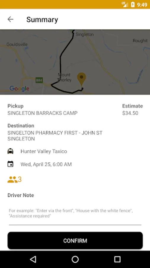Taxico App allows you to create bookings with the Hunter Valley Taxico dispatching system, which services the Pokolbin, Wine Country (Hunter Valley Vineyards) and Singleton areas. You can use your current location or enter an address.