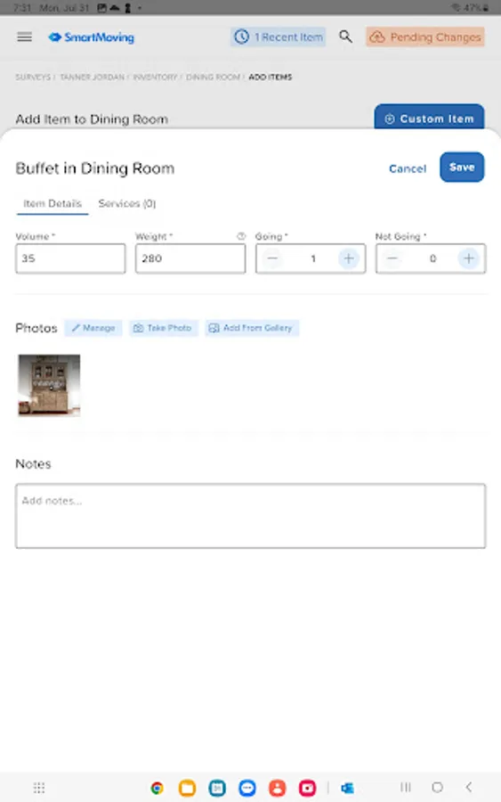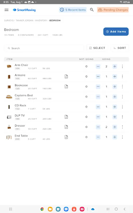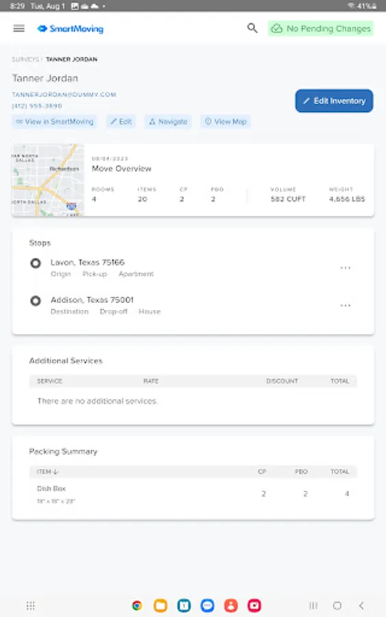 Our app enables your surveyors to perform a thorough assessment. From taking inventory of belongings to noting fragile items, furniture, and special requirements, SmartMoving ensures that no detail is overlooked.