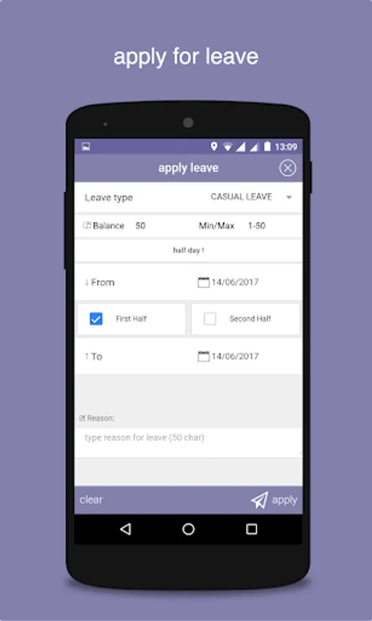 - Apply for Leave from app