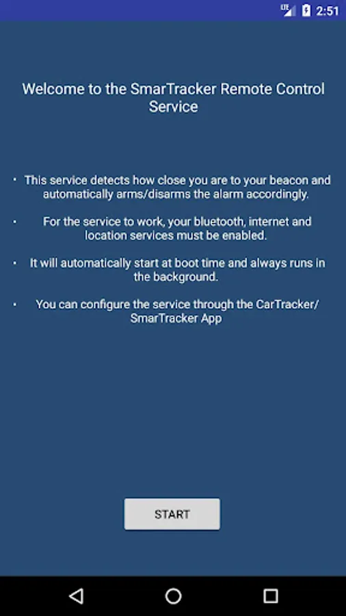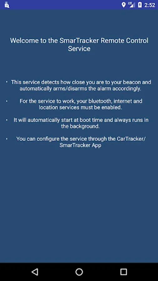 Companion app for "Smartracker". Place the bluetooth beacon inside your vehicle and its alarm will be armed/disarmed automatically when you approach/move away from it with your smartphone.
