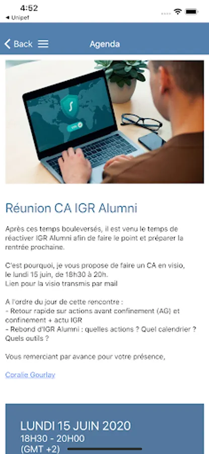 free application for all graduates and students of the IGR-IAE Rennes (member or not); the only requirement is to activate their account via the website www.igr-alumni.fr