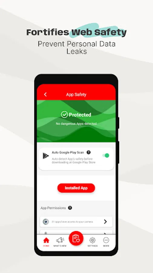 “Data Guard” scans applications on Google Play Store before installation and identifies unsafe Apps. It also scans applications installed on your device and alerts you when unsafe Apps are detected to ensure each App can only read their permitted information.
