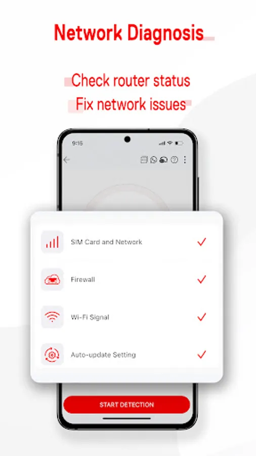 Check your SIM card, network connection, and other statuses. Provide relevant suggestions to fix network issues
