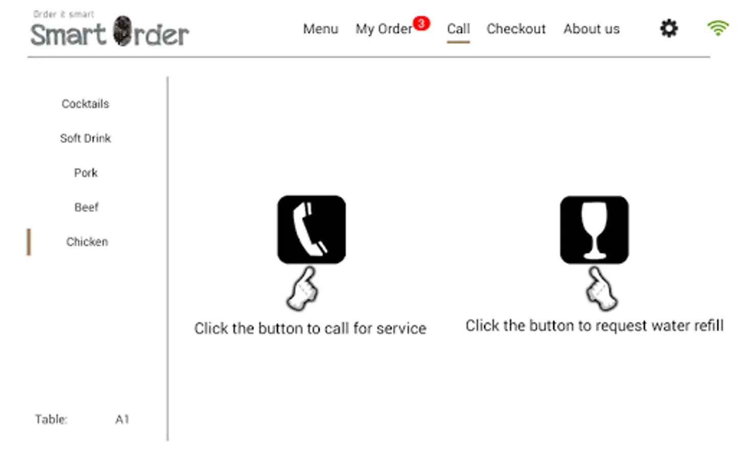 We provide a affordable self ordering system for you to setup in your restaurant. It is very simple to setup our system. To use Smart Menu (Self Ordering System/Menu) you will need to have Smart POS in the same intranet. The Smart POS is the server of the system, providing the messaging service for the Smart Menu.