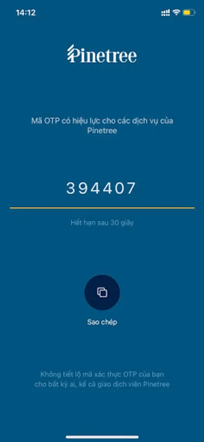 Pinetree Smart OTP is an application developed by Pinetree Securities Joint Stock Company, is a security application installed right on mobile devices to generate authentication codes when performing transactions on Pinetree services. Pinetree Smart OTP will definitely bring customers a completely satisfied experience with the following outstanding features: