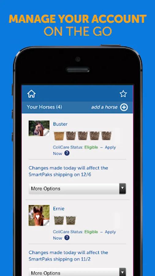 Put SmartPak in your pocket with the SmartPak app! Whether it's managing your horse's SmartPaks, sharing tales from the barn on our forum, adding to your Wishlist, or reading the latest horsey blog – all the things you love about SmartPak are now right at your fingertips!