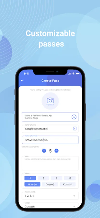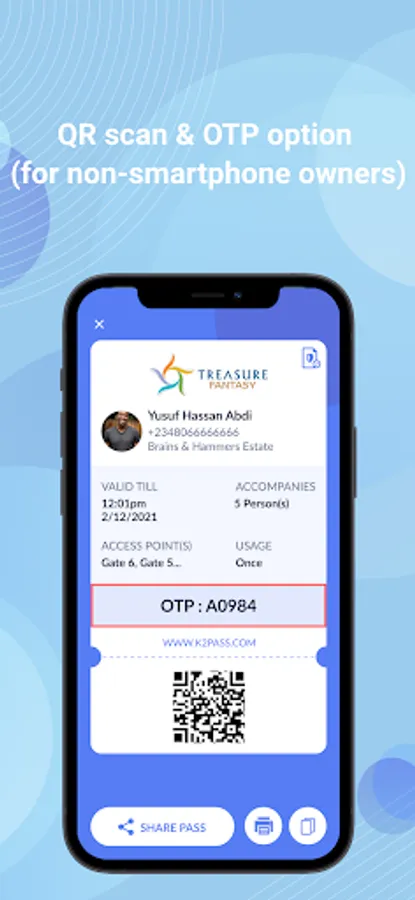 1. Generate Pass: create visitors pass in few seconds with access points, usage frequency, and access duration.