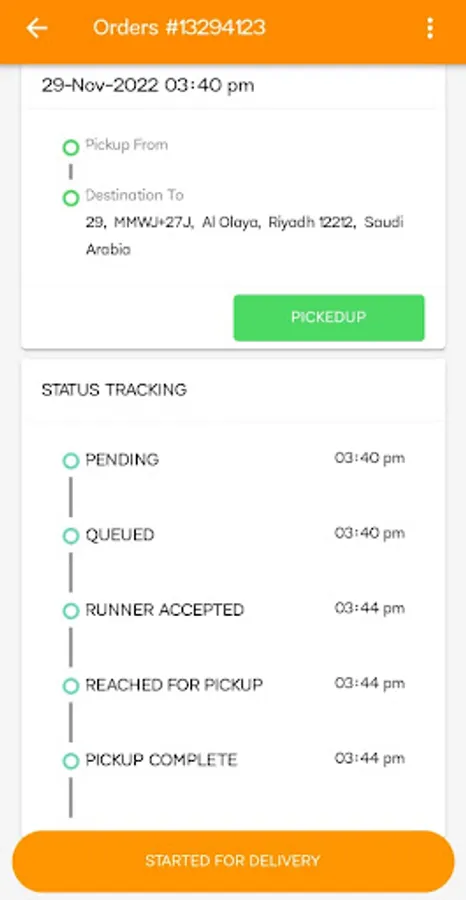 * Update the delivery status as and when each step is completed
