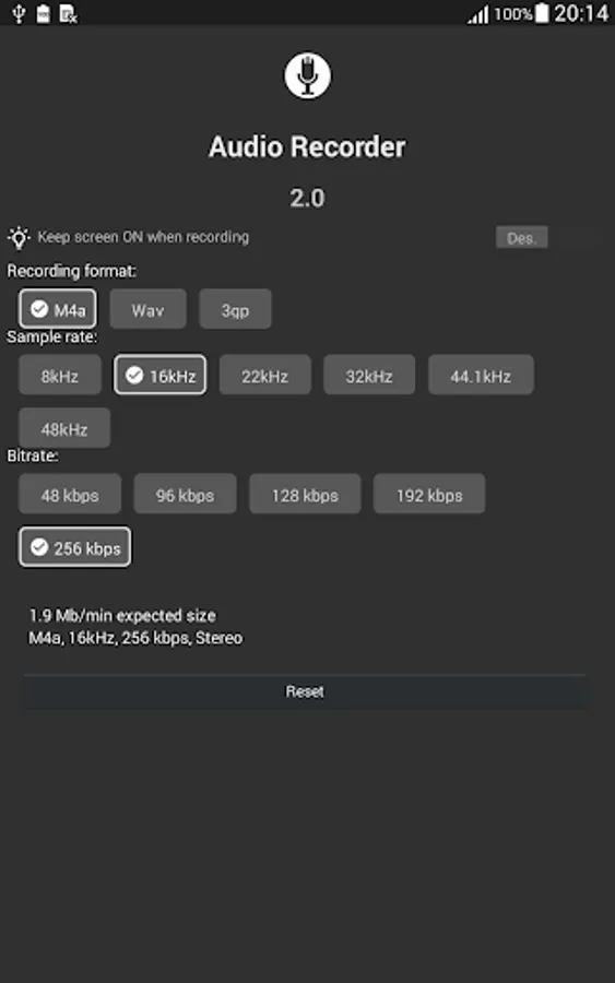 DISCLAIMER: This app is not a call recorder. It may not work properly on some devices. The user interface is not yet optimized for tablets. The recordings in this format can be sent by text / sms / mms. Feel free to send your comments by mail if present.