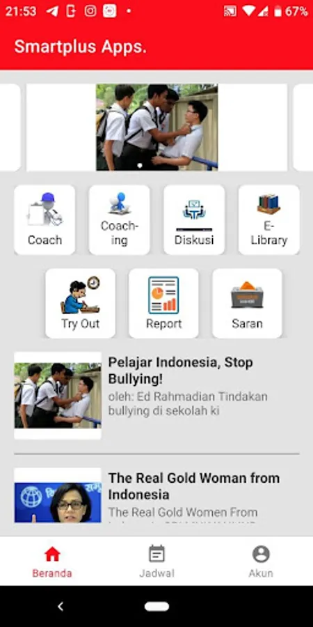 Learning Center Smartplus is an application intended for students, parents, educators, and coaches Bimbel Smartplus. Features contained in the application: