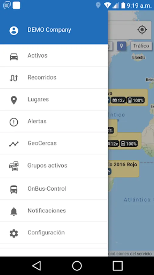 - Acceso OnLine, a la información de la posición actual o última posición del vehículo.