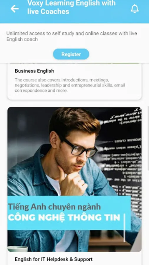 + Learning language courses like English for communication, Business English, or English for F&B
