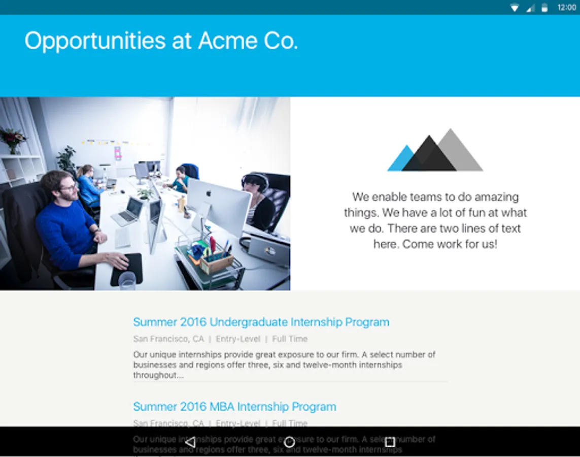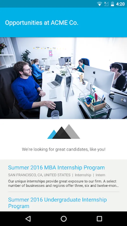 • Represent your brand beautifully with a personalized career page that has targeted jobs, custom logos, pictures and colors.