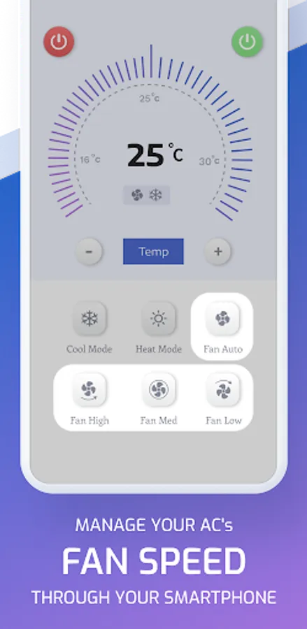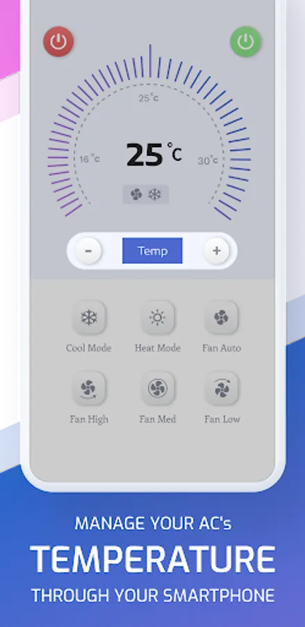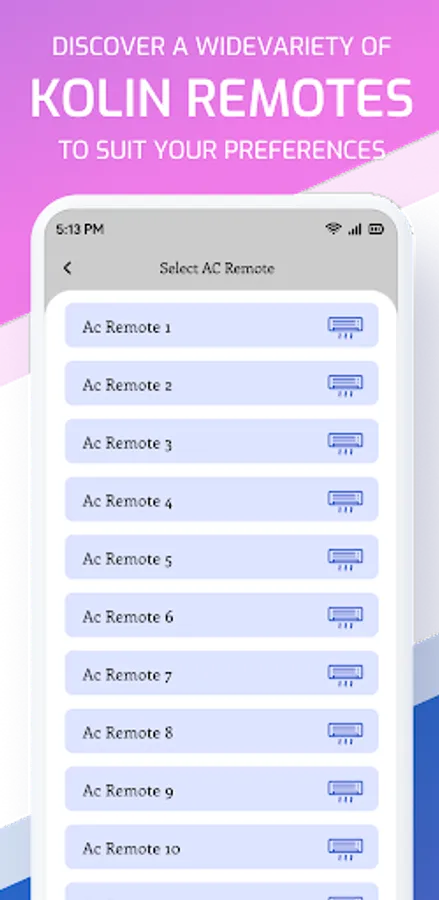 >> Our user-friendly interface provide the layout and buttons of your Kolin AC remote. our app has buttons to Adjust the temperature, set timers, turn the unit on/off, change fan speed, and select operating modes.