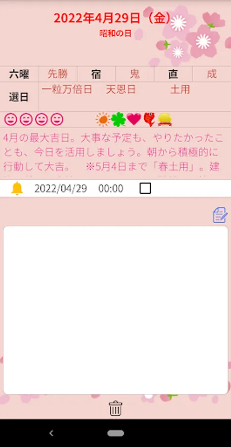 In addition, from the 2022 edition, Mr. Murakami of the Kaiun Calendar Kaiun Orientation Research Institute, who is the supervisor of this app, has posted commentary comments in the daily calendar. I think it will be useful as a reference when deciding the schedule for the day.