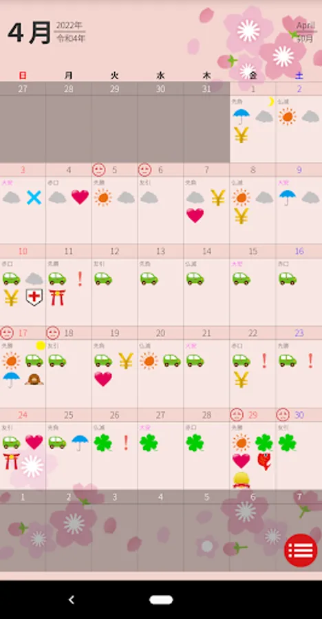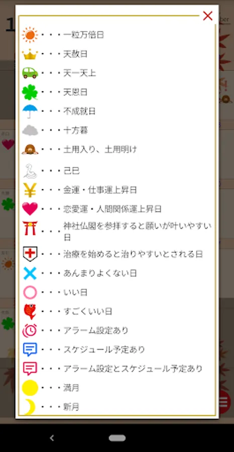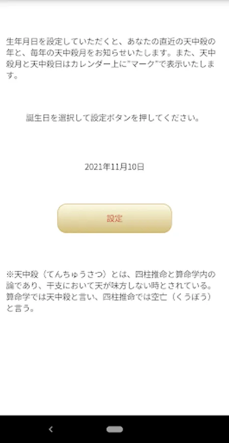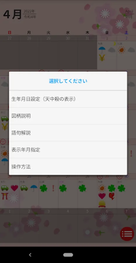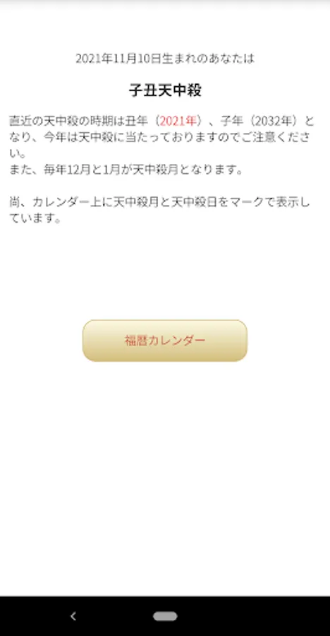 * From the 2022 edition, if you set your date of birth, we will inform you of your most recent year of death in the sky and the month of death in the sky every year. In addition, the Tenchu killing month and the Tenchu killing day will be displayed as icons on the calendar.