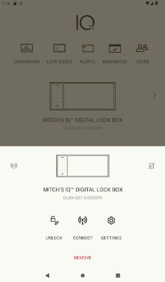 - Remotely unlock your IQ Lock Box to grant access to family while away