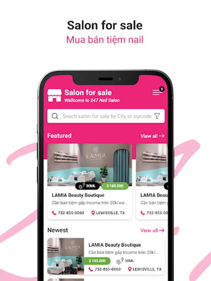 Our App provide strongest and fastest tool to help you find a Nail Job or Salon for Sale near your place. We also provide classifieds for nail supplies to connect sellers and buyers.
