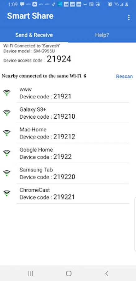 4. Smart Share app will find nearby devices connected to same Wi-Fi and Send and Receive file between two devices connected to Same Wi-Fi