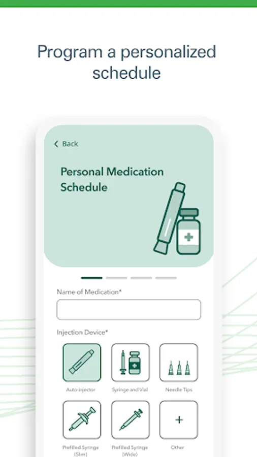 PERSONALIZE YOUR INJECTION SCHEDULE: Set reminders for upcoming injections, including site rotations