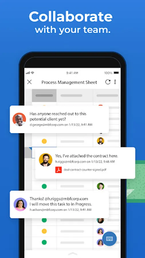 • Send automated updates and approval requests to streamline work and reduce the need for meetings to increase productivity.