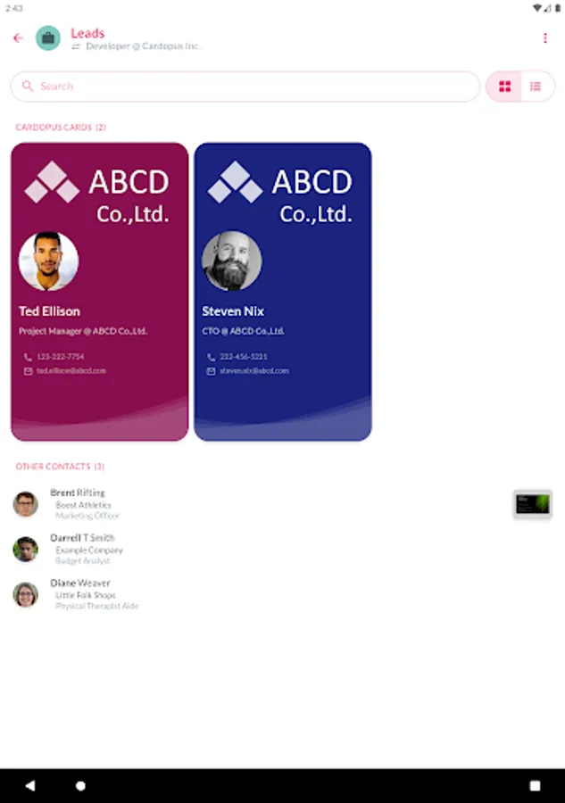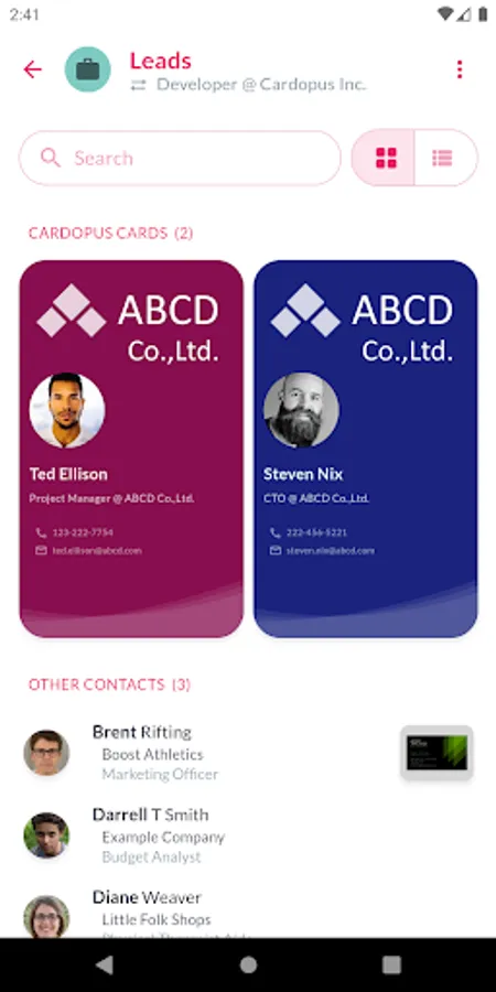 - Never run out of business cards again! Share your cards via QR codes or web links.