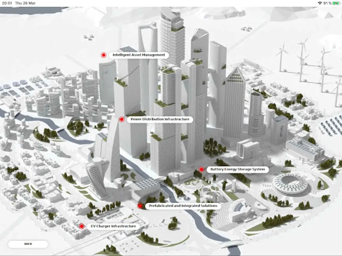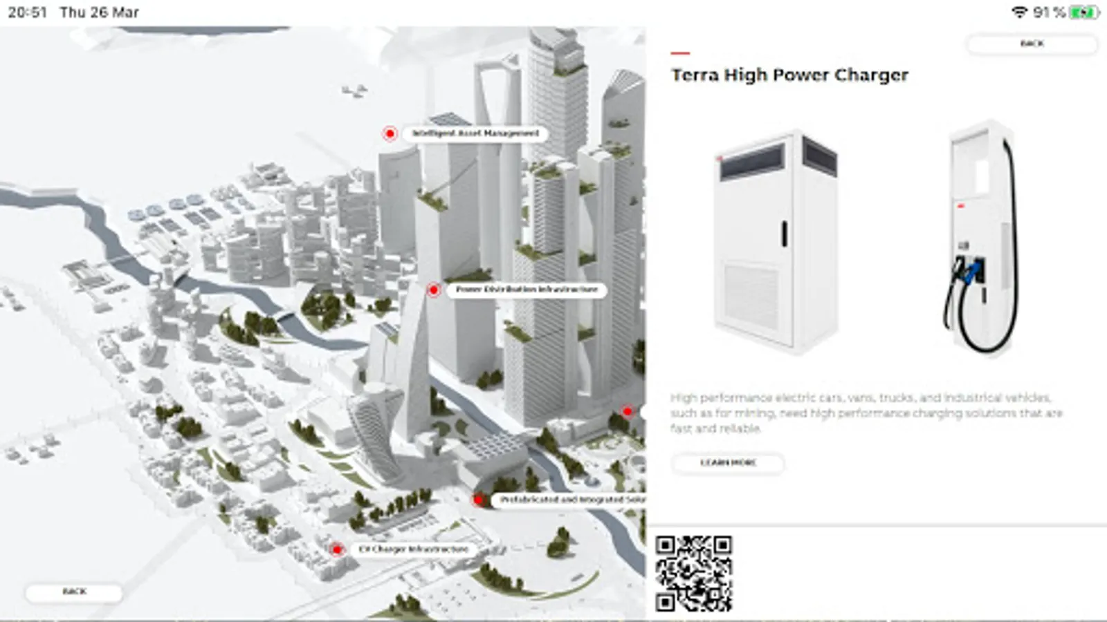 The ABB Smart Societies application showcases intelligent products, solutions and services for Smart Cities, Smart Industries and Smart Infrastructure.