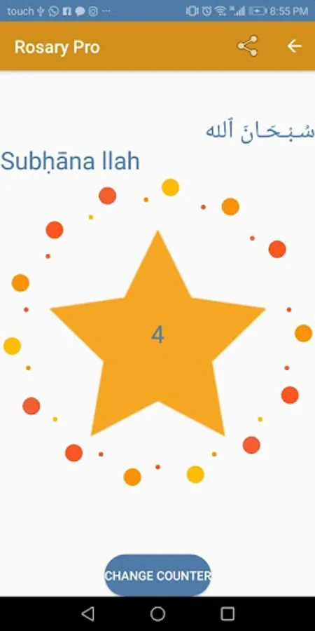 You can share the app with your friends and family and you can also use this app as a group to accomplish a tasbeh goal. By allowing to share the counter with your family and friends.